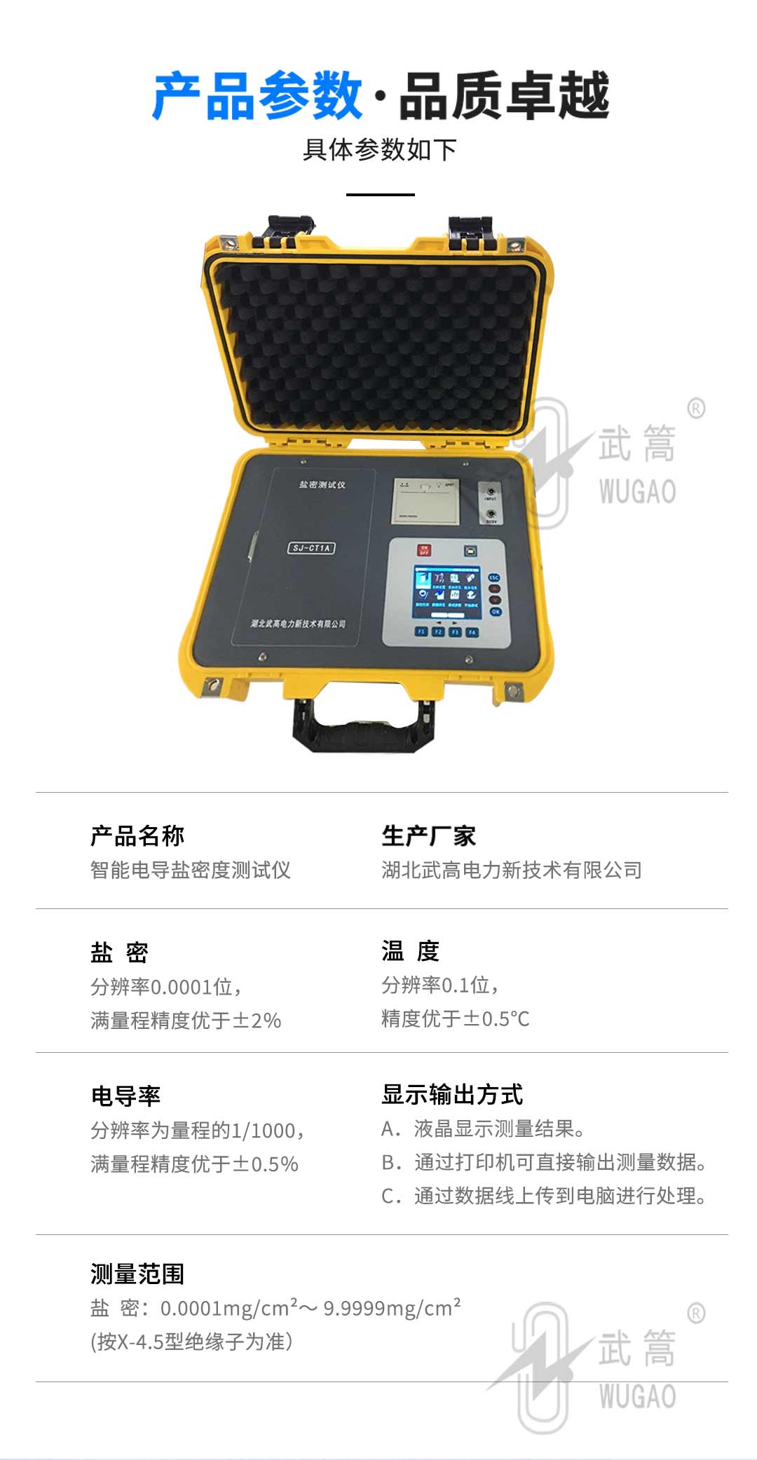電導鹽密測試儀,也稱為直讀式等值鹽密度測試儀,專為測試絕緣子等值鹽密度而設計。